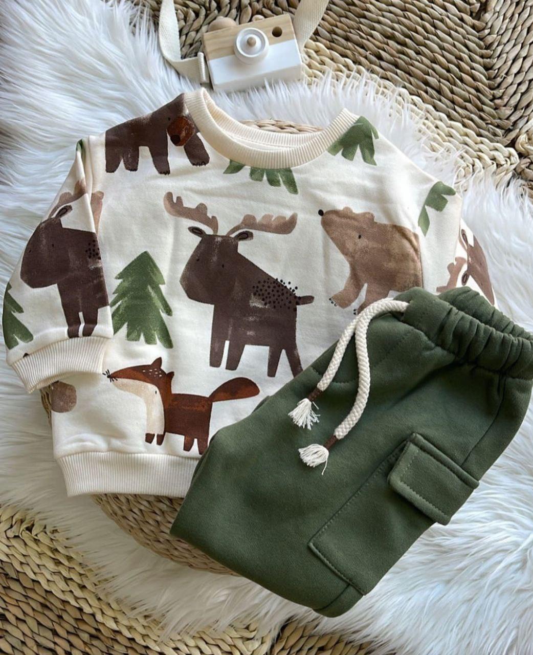 ست بلوز و شلوار پسرانه مدل گوزن و جنگل – از دل طبیعت تا قلب کودک شما!