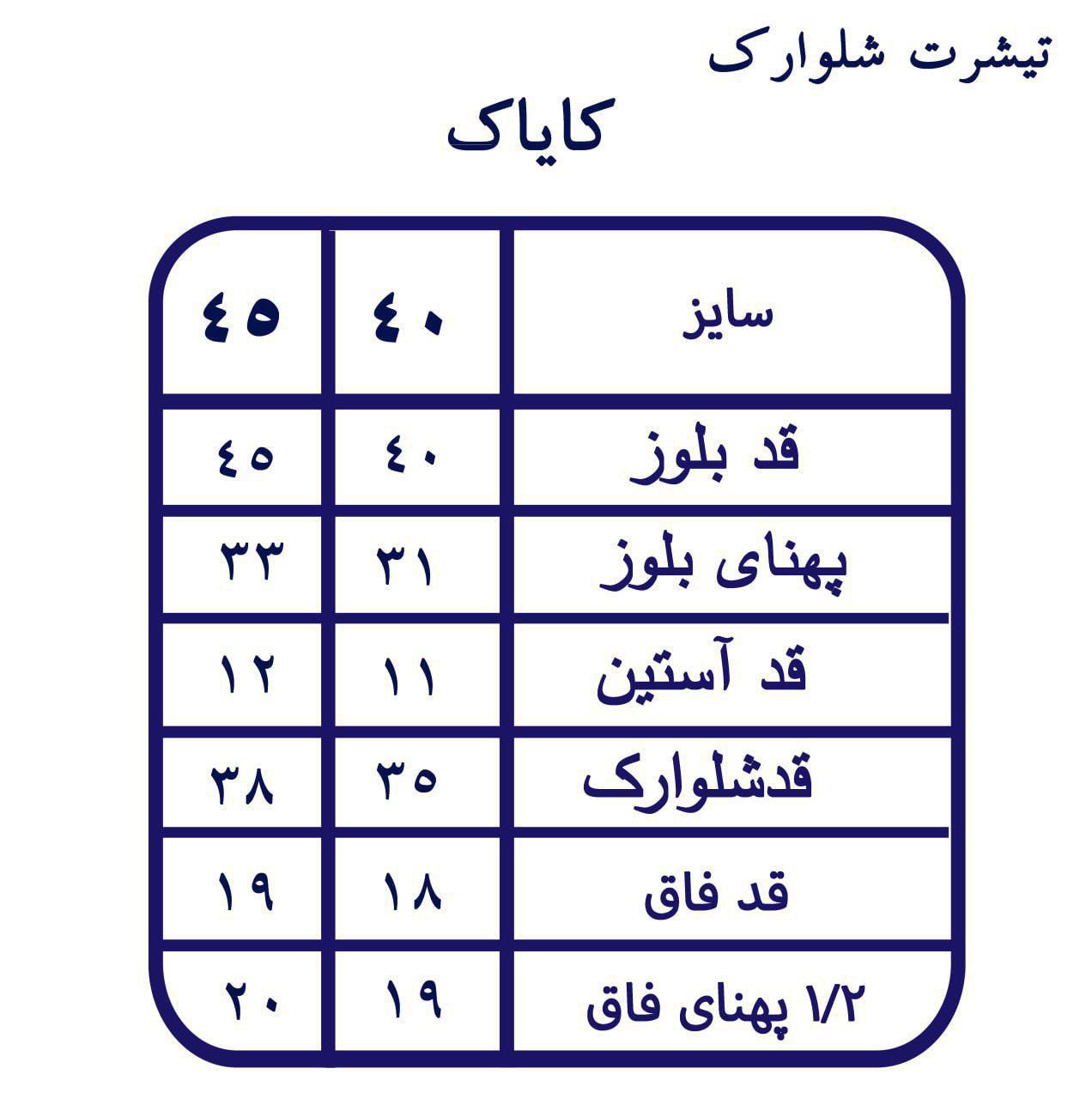 ۴۰ ,۴۵ ,۵۰ ,۵۵ |